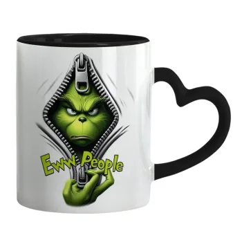 Grinch, eww people, Κούπα καρδιά χερούλι μαύρη, κεραμική, 330ml