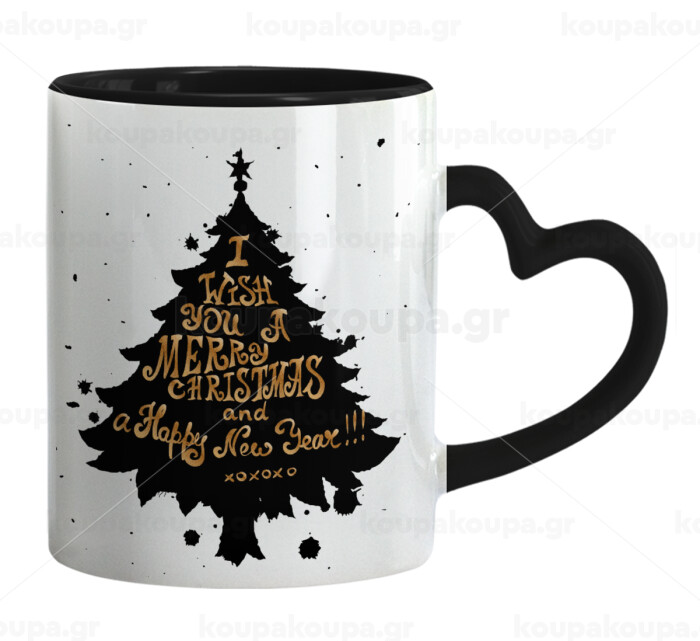 Tree, i wish you a merry christmas and a Happy New Year!!! xoxoxo, Κούπα καρδιά χερούλι μαύρη, κεραμική, 330ml