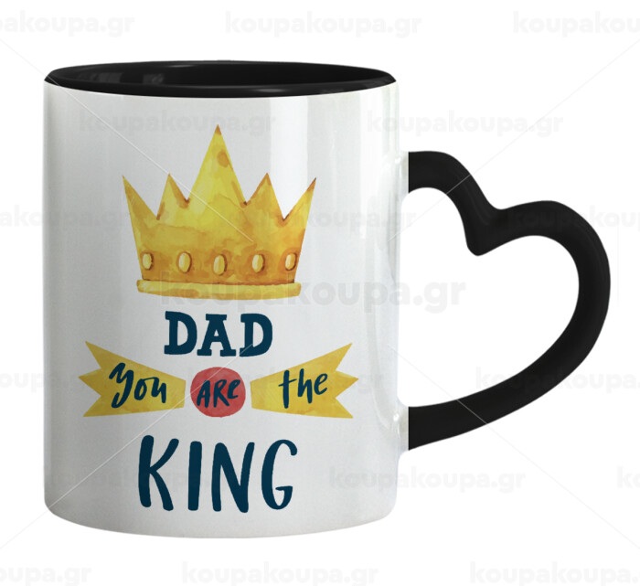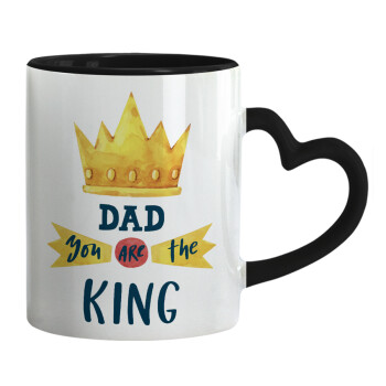 Dad you are the King, Κούπα καρδιά χερούλι μαύρη, κεραμική, 330ml