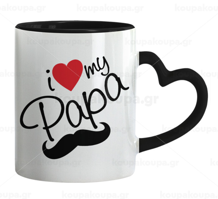 I Love my papa, Κούπα καρδιά χερούλι μαύρη, κεραμική, 330ml