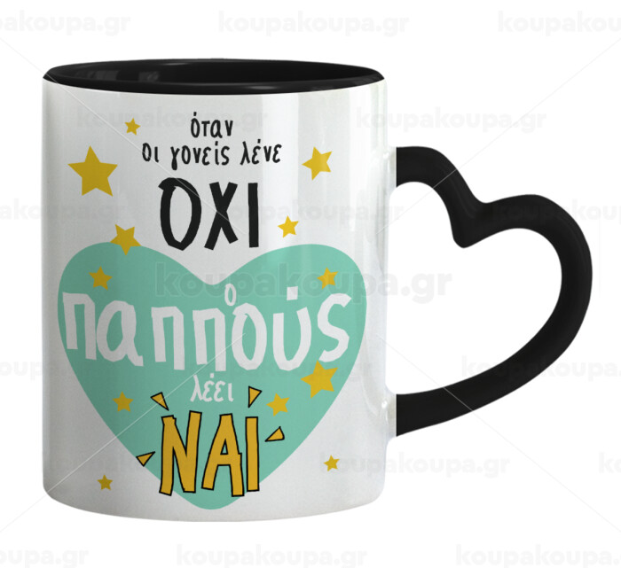 Όταν οι γονείς λένε ΟΧΙ, ο παππούς λέει ΝΑΙ, Κούπα καρδιά χερούλι μαύρη, κεραμική, 330ml