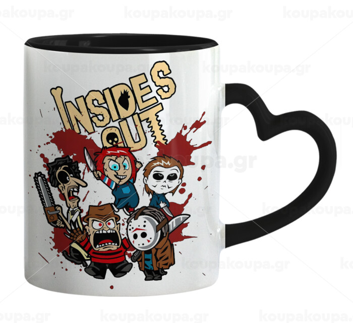 Halloween Inside out, Κούπα καρδιά χερούλι μαύρη, κεραμική, 330ml