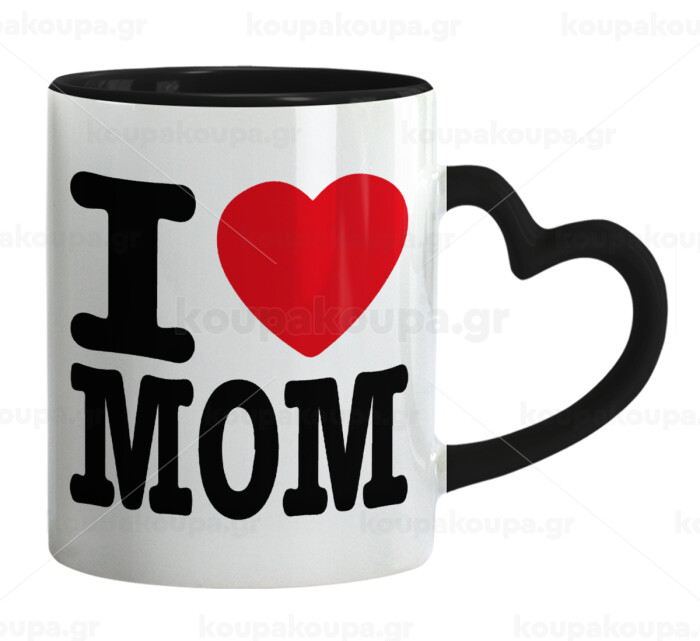 I LOVE MOM, Κούπα καρδιά χερούλι μαύρη, κεραμική, 330ml