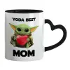 Yoda Best mom, Κούπα καρδιά χερούλι μαύρη, κεραμική, 330ml