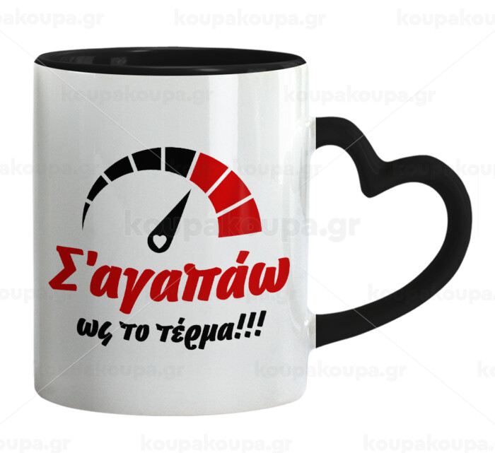 Σ΄ αγαπώ ως το τέρμα!!!, Κούπα καρδιά χερούλι μαύρη, κεραμική, 330ml