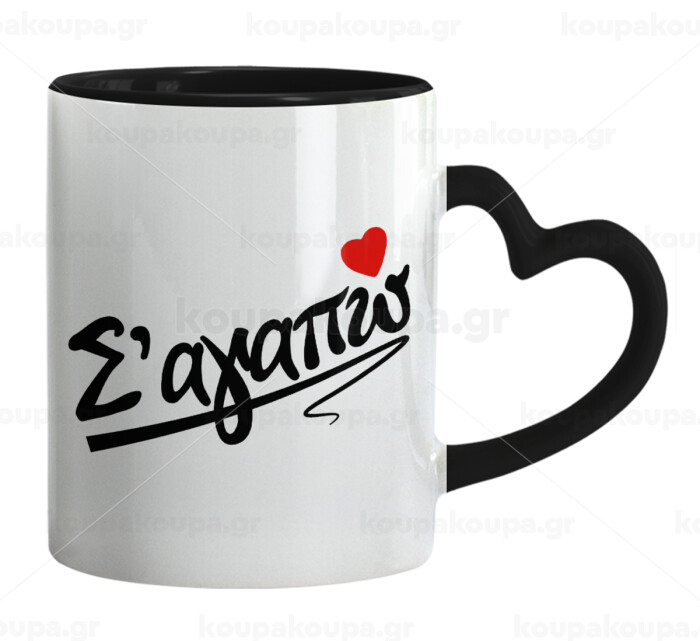 Σ΄ αγαπώ!!!, Κούπα καρδιά χερούλι μαύρη, κεραμική, 330ml