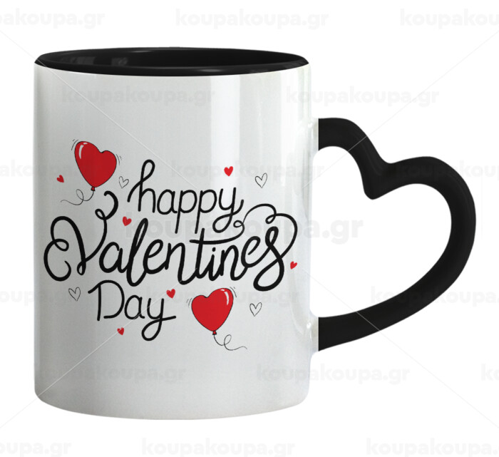 Happy Valentines Day!!!, Κούπα καρδιά χερούλι μαύρη, κεραμική, 330ml