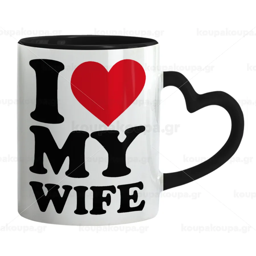 I Love my Wife, Κούπα καρδιά χερούλι μαύρη, κεραμική, 330ml