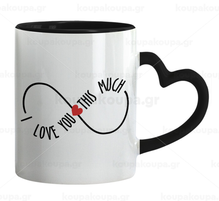 I Love you thisssss much (infinity), Κούπα καρδιά χερούλι μαύρη, κεραμική, 330ml