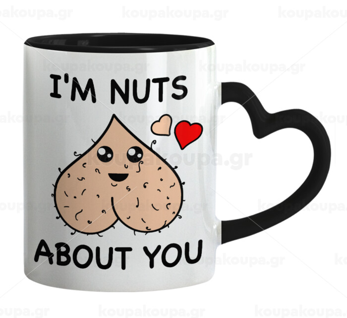 I'm Nuts About You, Κούπα καρδιά χερούλι μαύρη, κεραμική, 330ml