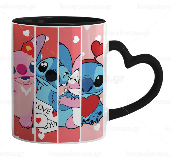 Lilo & Stitch Love, Κούπα καρδιά χερούλι μαύρη, κεραμική, 330ml