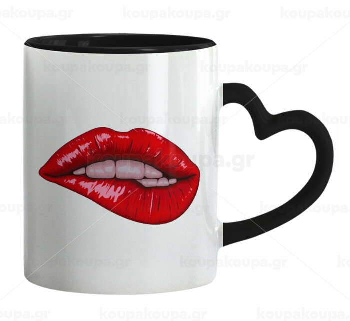 Lips, Κούπα καρδιά χερούλι μαύρη, κεραμική, 330ml