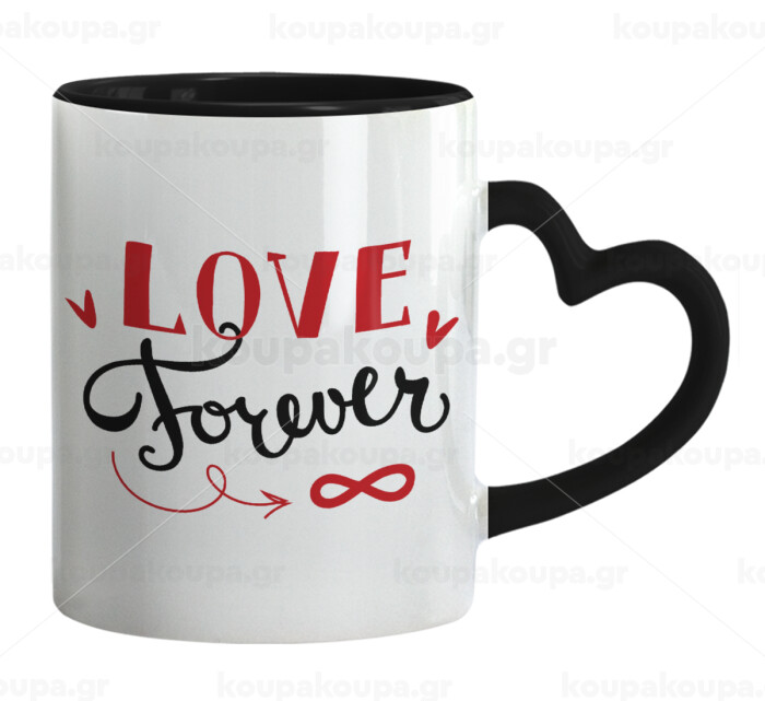 Love forever ∞, Κούπα καρδιά χερούλι μαύρη, κεραμική, 330ml