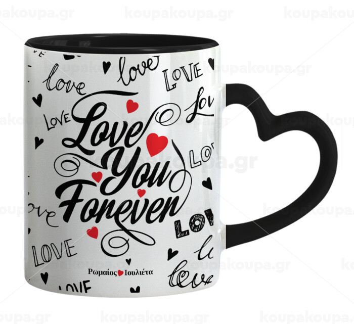 Love You Forever, Κούπα καρδιά χερούλι μαύρη, κεραμική, 330ml