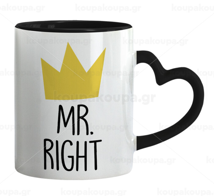 Mr right, Κούπα καρδιά χερούλι μαύρη, κεραμική, 330ml