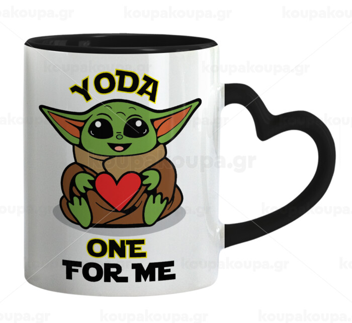 Yoda, one for me , Κούπα καρδιά χερούλι μαύρη, κεραμική, 330ml