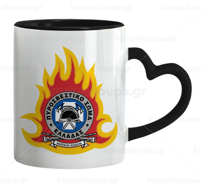 Πυροσβεστικό σώμα Ελλάδος, Κούπα καρδιά χερούλι μαύρη, κεραμική, 330ml