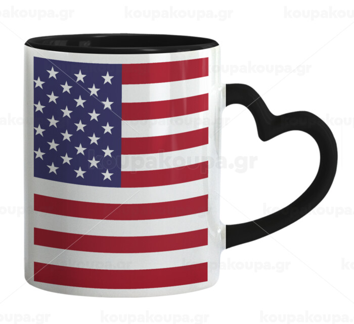 Σημαία Αμερικής, Κούπα καρδιά χερούλι μαύρη, κεραμική, 330ml