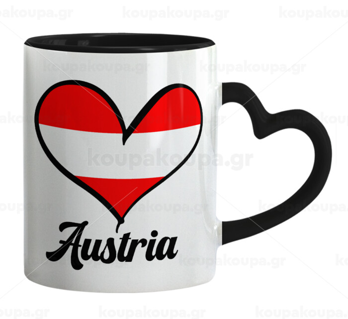 Austria flag, Κούπα καρδιά χερούλι μαύρη, κεραμική, 330ml