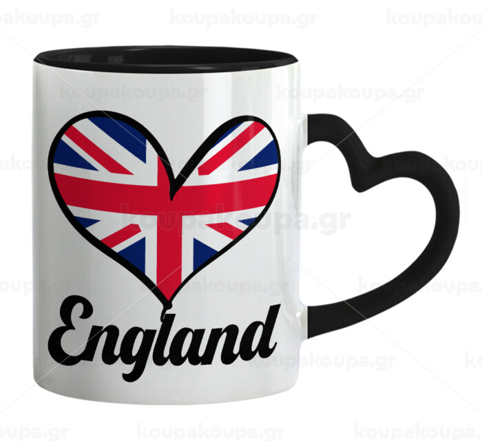 England flag, Κούπα καρδιά χερούλι μαύρη, κεραμική, 330ml