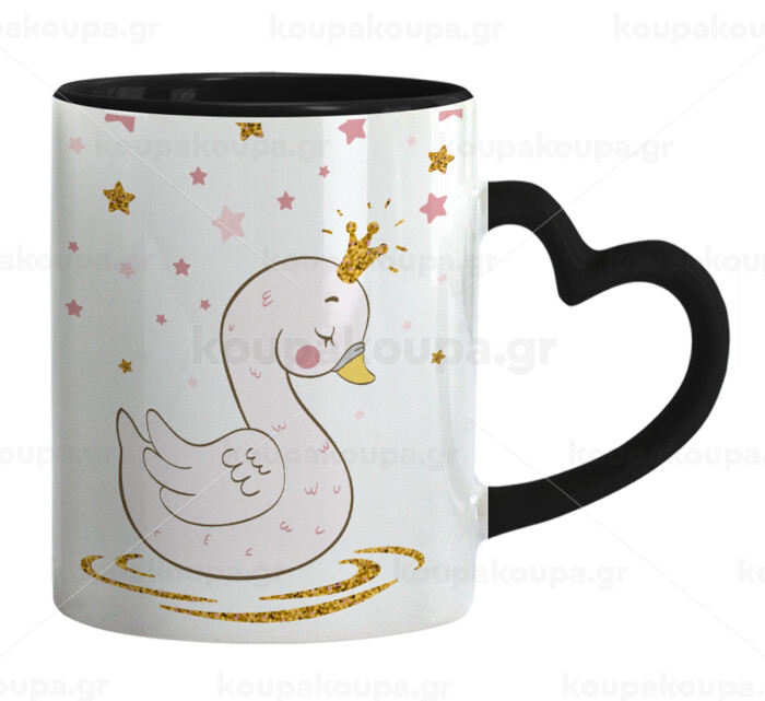 Κύκνος με στέμα, Κούπα καρδιά χερούλι μαύρη, κεραμική, 330ml