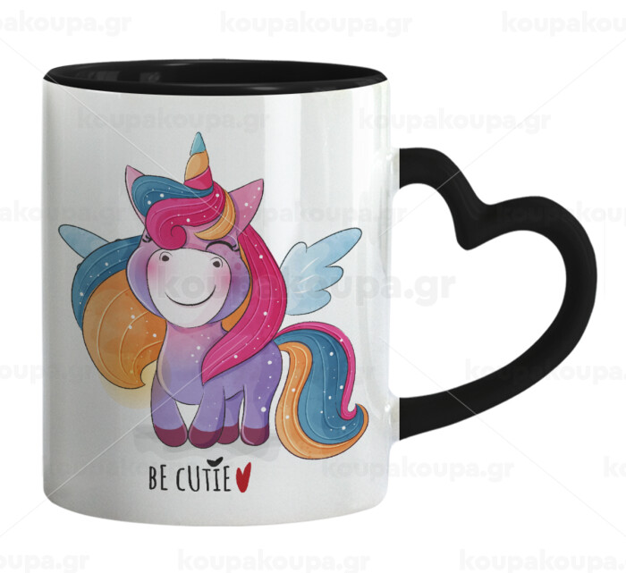 Μονόκερος, Κούπα καρδιά χερούλι μαύρη, κεραμική, 330ml