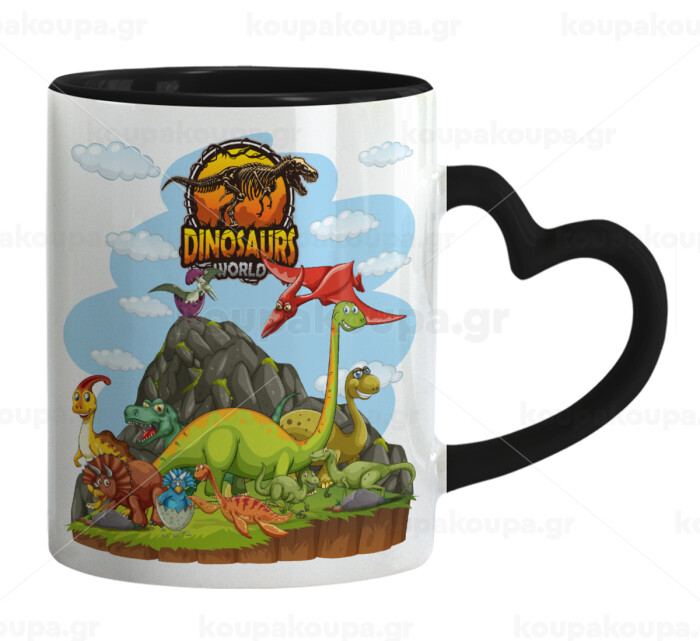 Dinosaur's world, Κούπα καρδιά χερούλι μαύρη, κεραμική, 330ml