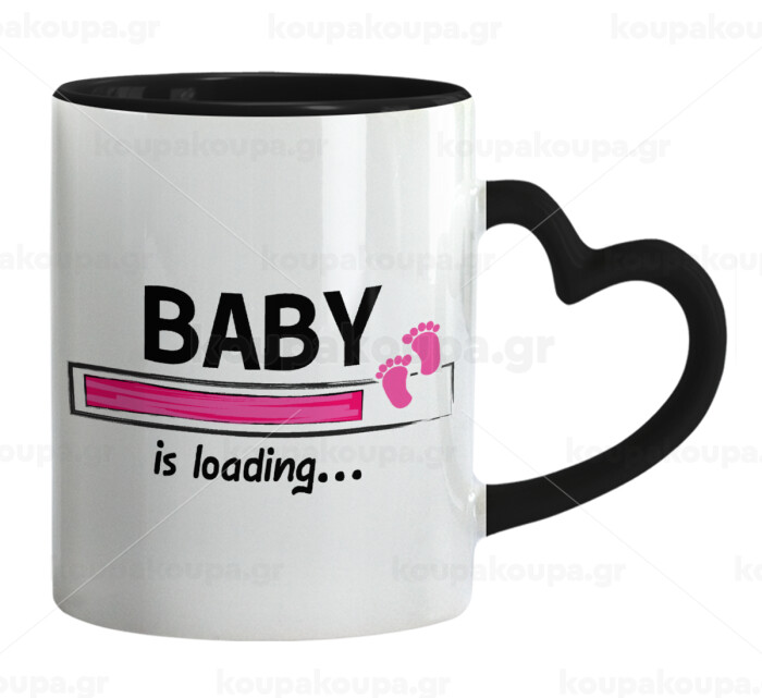 Baby is Loading GIRL, Κούπα καρδιά χερούλι μαύρη, κεραμική, 330ml