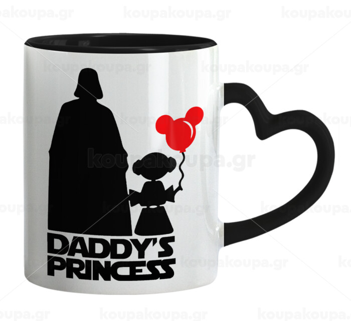 Daddy's princess, Κούπα καρδιά χερούλι μαύρη, κεραμική, 330ml