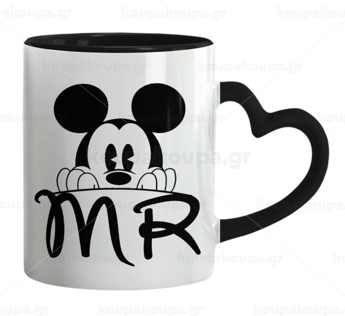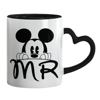 Mikey Mr, Κούπα καρδιά χερούλι μαύρη, κεραμική, 330ml