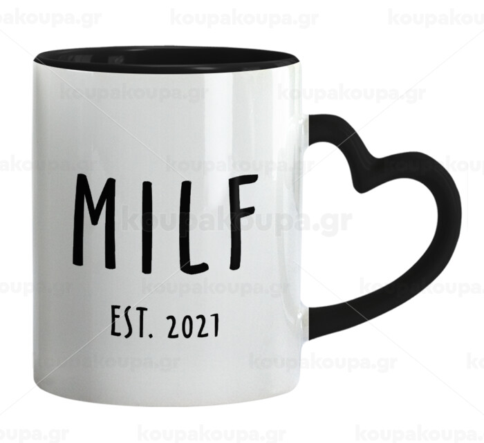 MILF, Κούπα καρδιά χερούλι μαύρη, κεραμική, 330ml