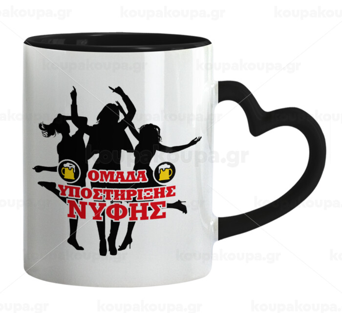 Bachelor Ομάδα υποστήριξης Νύφης, Κούπα καρδιά χερούλι μαύρη, κεραμική, 330ml