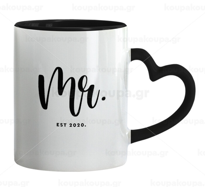 Mr & Mrs (Mr), Κούπα καρδιά χερούλι μαύρη, κεραμική, 330ml