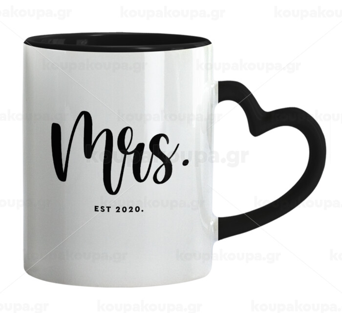Mr & Mrs (Mrs), Κούπα καρδιά χερούλι μαύρη, κεραμική, 330ml