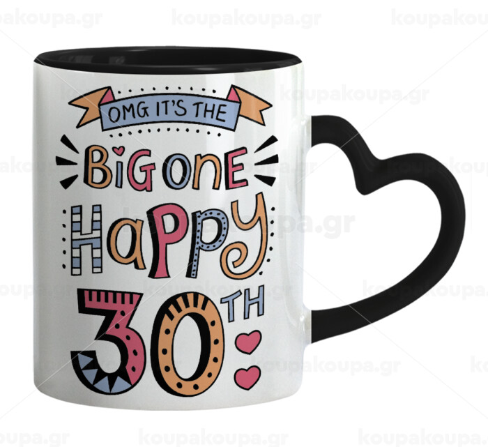 Big one Happy 30th, Κούπα καρδιά χερούλι μαύρη, κεραμική, 330ml