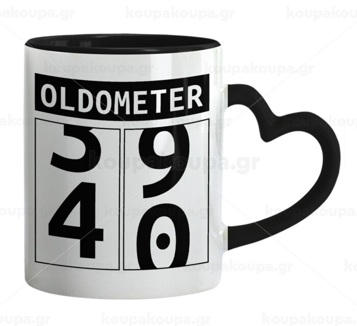 OLDOMETER, Κούπα καρδιά χερούλι μαύρη, κεραμική, 330ml