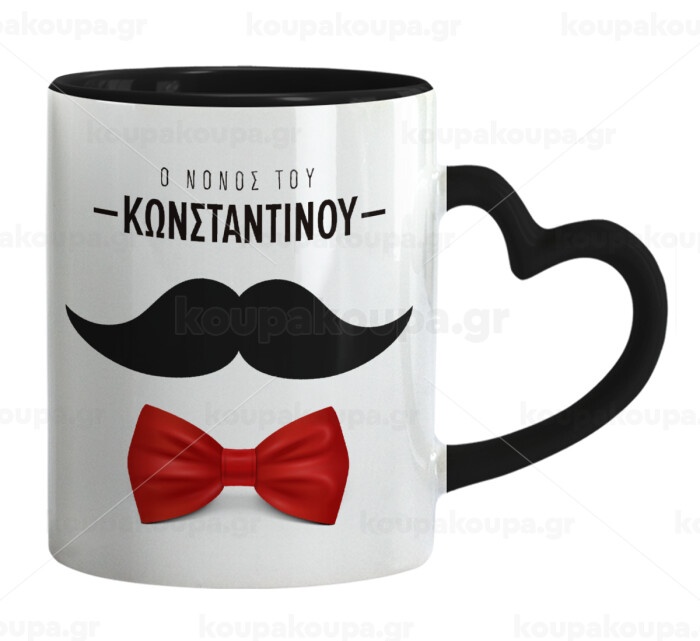 Ο νονός μου, μουστάκι με παπιγιόν, Κούπα καρδιά χερούλι μαύρη, κεραμική, 330ml