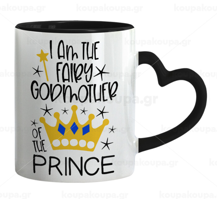 I am the fairy Godmother of the Prince, Κούπα καρδιά χερούλι μαύρη, κεραμική, 330ml