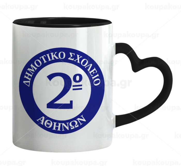 Έμβλημα Σχολικό μπλε, Κούπα καρδιά χερούλι μαύρη, κεραμική, 330ml