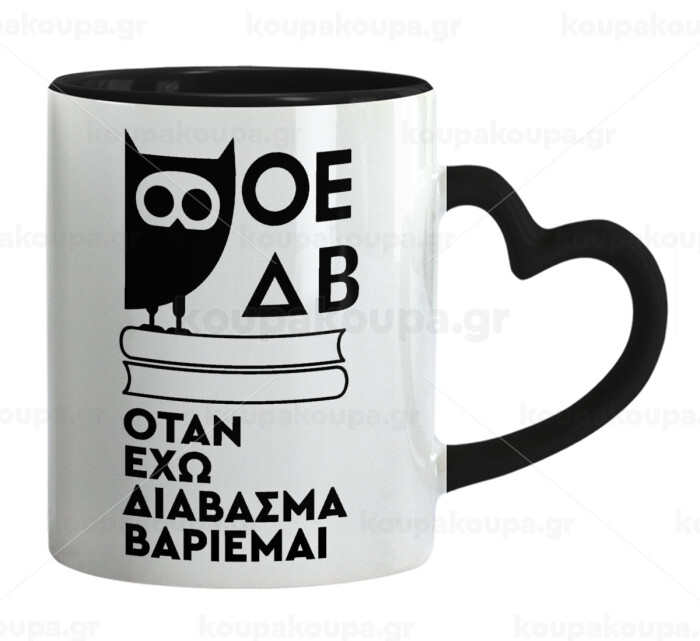 ΟΕΔΒ, Κούπα καρδιά χερούλι μαύρη, κεραμική, 330ml