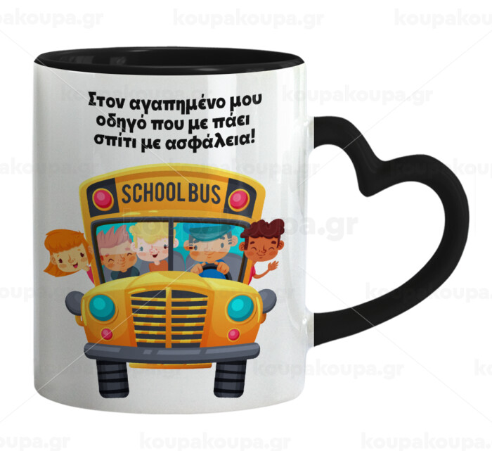 Στον αγαπημένο μου οδηγό που με πάει σπίτι με ασφάλεια!, Κούπα καρδιά χερούλι μαύρη, κεραμική, 330ml