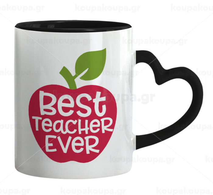 best teacher ever, apple!, Κούπα καρδιά χερούλι μαύρη, κεραμική, 330ml