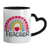 Rainbow teacher, Κούπα καρδιά χερούλι μαύρη, κεραμική, 330ml
