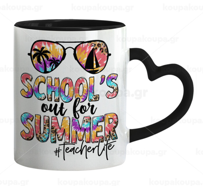 School's Out For Summer Teacher Life, Κούπα καρδιά χερούλι μαύρη, κεραμική, 330ml