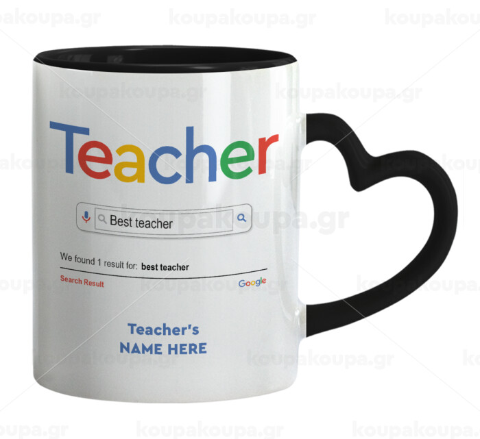 Searching for Best Teacher..., Κούπα καρδιά χερούλι μαύρη, κεραμική, 330ml