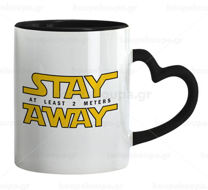 Stay Away, Κούπα καρδιά χερούλι μαύρη, κεραμική, 330ml