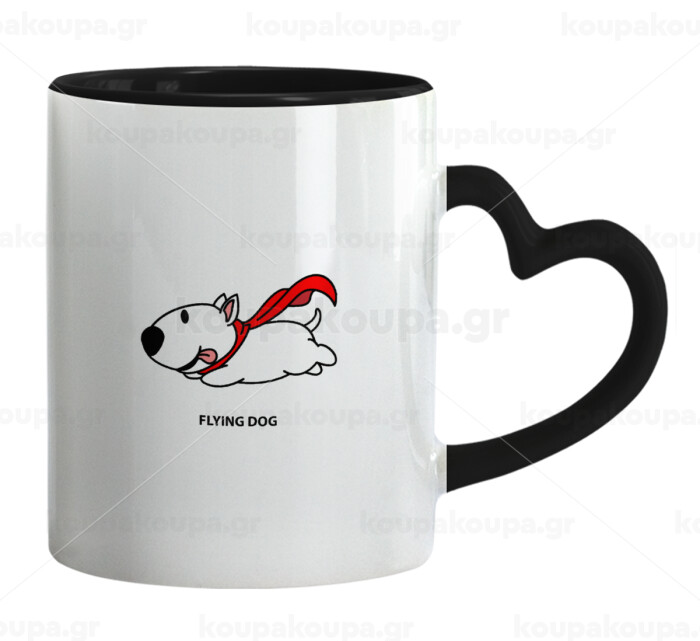 Flying DOG, Κούπα καρδιά χερούλι μαύρη, κεραμική, 330ml