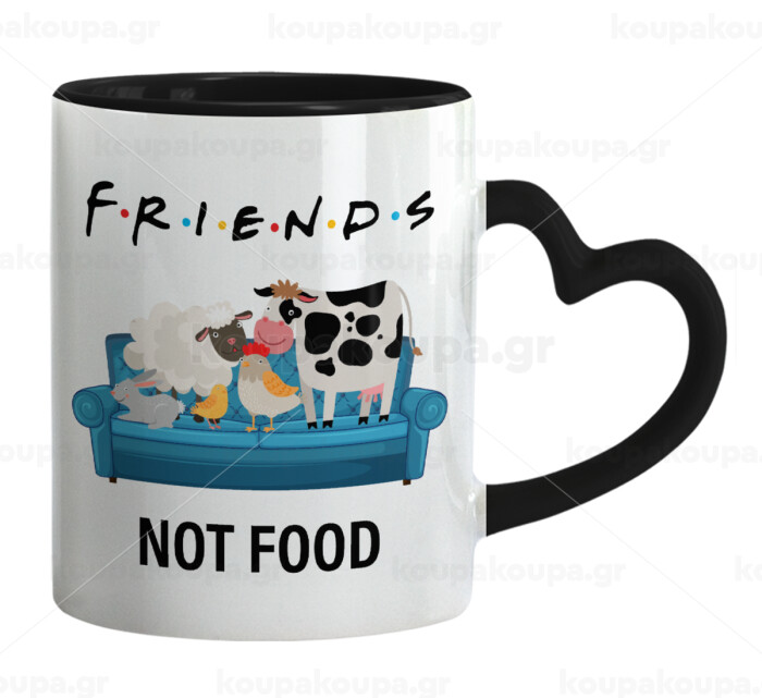 friends, not food, Κούπα καρδιά χερούλι μαύρη, κεραμική, 330ml