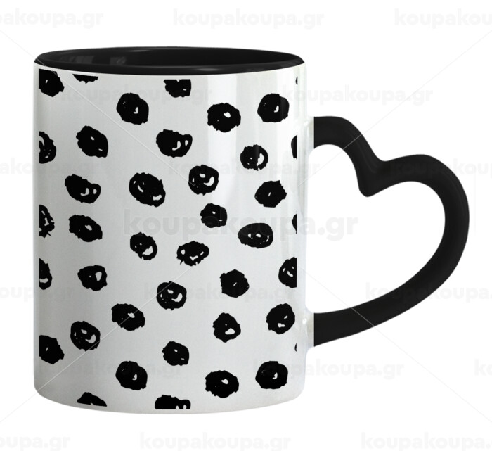 Doodle Dots, Κούπα καρδιά χερούλι μαύρη, κεραμική, 330ml