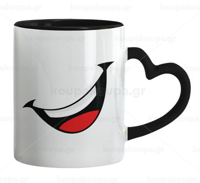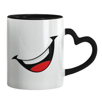 Φατσούλα γελάω!!!, Κούπα καρδιά χερούλι μαύρη, κεραμική, 330ml